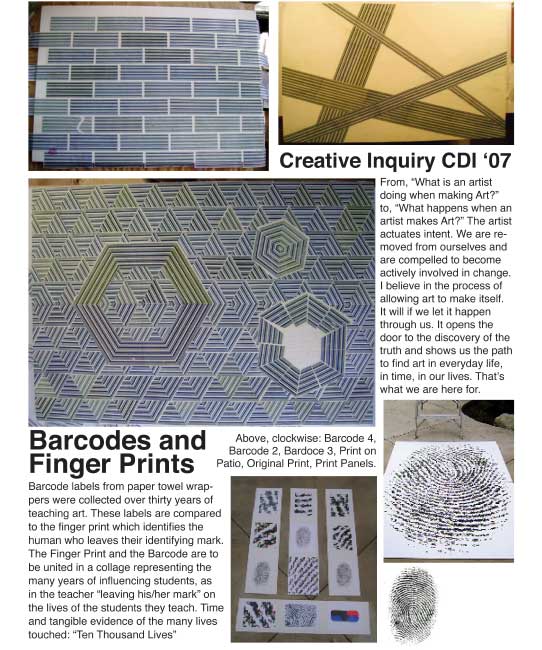 Each of the TCAP (the California Arts Project, of which I was a founding member) sponsored events provided experiences and exposure to the most comprehensive understandings and practices in the field of Public School Art Education. Every moment of our time was spent asking ourselves questions that would lead us to solutions and innovations in learning as well as teaching. Always, arts educators were not just given opportunities to, but were required to produce art. The practice is that, how can an art teacher (or any other kind of teacher) be able to give students an accurate grasp of the subject unless they practice it themselves. Therefore, at RIMSCAP (our local unit) and TCAP, with each gathering, conference or learning institute, each participant did what was called Creative Inquiry, making art. So I took the CI project from the last CDI (Collaborative Design Institute) I was in and turned it into my "Swan Song" of teaching art for thirty-seven years.