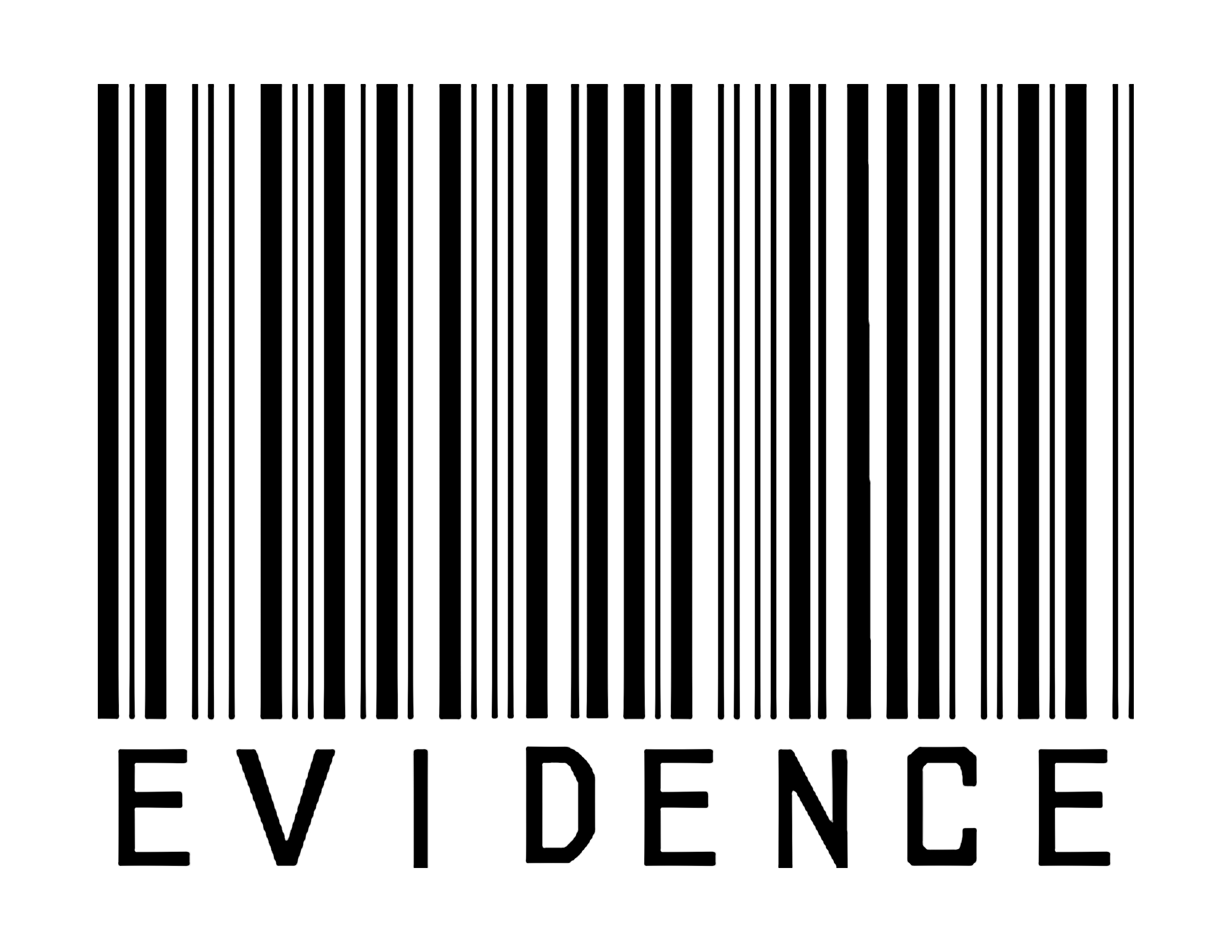 Recognize that the intent is to put a white bar code label on the back of the black T-shirt. It doesn't look good on the front and I'm not trying to do the really cool "Human Bar Code" print I've seen (and have one of) which is cool in itself and with its own intent. This one is meant to be a label of EVIDENCE on the back. It is different when this word shows up in white ink on the black shirt and I would not see it as appropriate for this show shirt. However, I can see the word/bar code as black ink on white shirt.